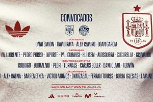 体育资讯03月20日讯 西班牙国家队今日公布了新一期球员名单,亚马尔、佩德里领衔,罗德里、库巴西在列,霍安·加西亚首次入选。本次国际比赛日,西班牙将先后交手塞尔维亚、埃及。