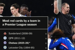 还剩11场!切尔西单季英超已吃到8张红牌,距赛事纪录只差一张