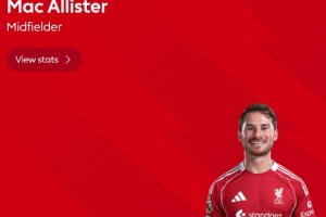 贡献绝杀!英超官方:麦卡利斯特当选利物浦1-0森林全场最佳